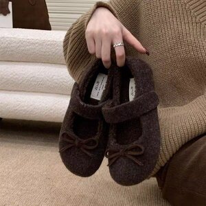 毛呢浅口单鞋女2025年秋冬新款法式复古玛丽珍毛毛鞋百搭休闲女鞋