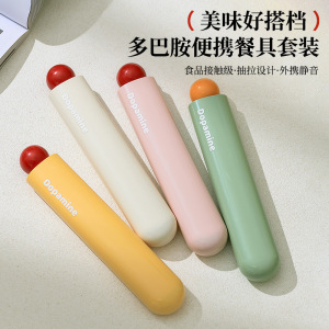 多巴胺筷子勺子套装便携式一人食儿童学生上班族不锈钢餐具收纳盒