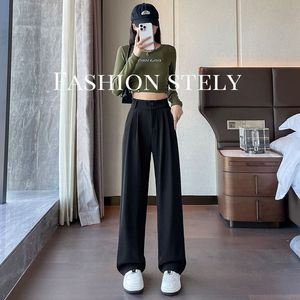 西装直筒阔腿裤2025夏季新款高腰显瘦垂感黑色小个子窄版西装裤女