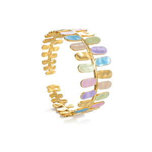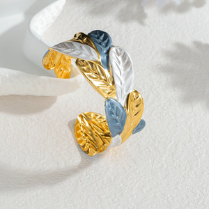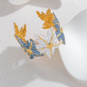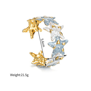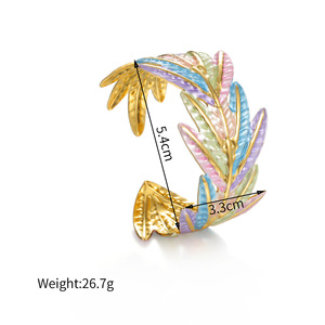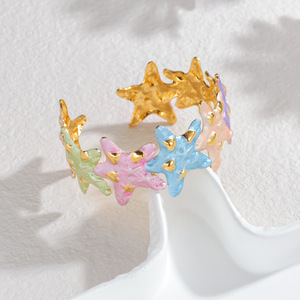 跨境爆款时尚珐琅开口手镯花朵树叶海星设计可调节不锈钢手饰批发