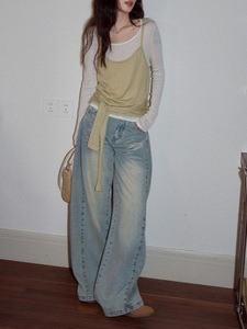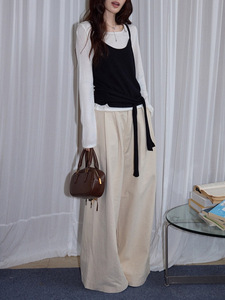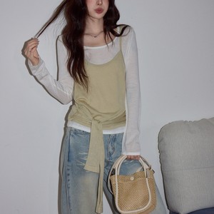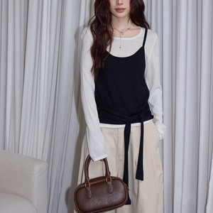 韩系慵懒松弛感上衣女早秋长袖T恤气质针织衫两件套打底衫
