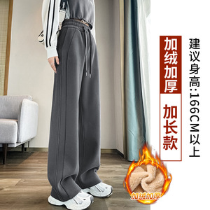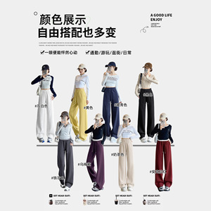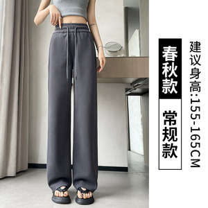 运动裤女春秋2025新款女装加绒宽松小个子窄版乌梅紫休闲阔腿卫裤