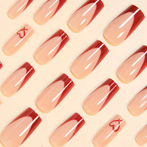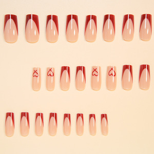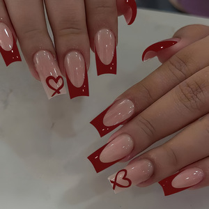 简约酒红色法式爱心欧方型假指甲欧美轻奢风ins美甲可拆卸甲片