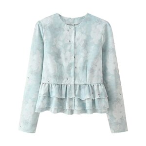 ZARZ 自制 欧美风 新款女装 荷叶边收腰长袖上衣松紧腰半裙套装