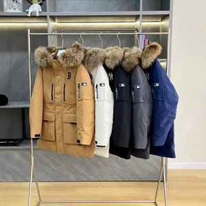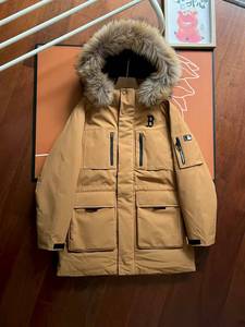 25冬季潮牌MLB男女情侣款防寒保暖连帽大毛领加厚工装羽绒服
