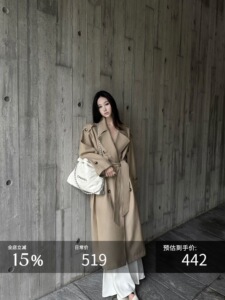 5werkwen 智贤风衣 双排扣大衣女秋冬中长款气质翻领系带春秋外套