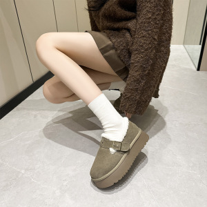 真皮勃肯鞋女冬厚底雪地靴女2025年新款一脚蹬保暖棉鞋厚绒雪地棉