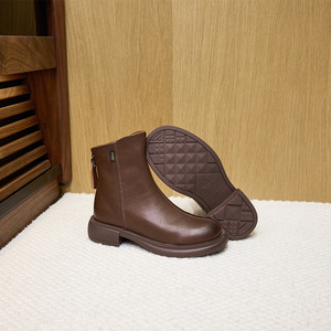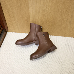 2025秋季新品真皮马丁靴女韩版后拉链女式皮靴子一脚蹬厚底休闲鞋