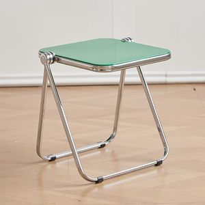 ins风简约餐椅家用折叠凳网红拍照水晶椅亚克力透明中古家具凳子