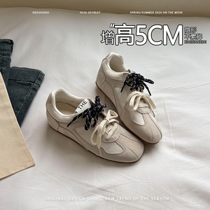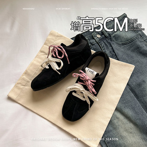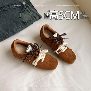 现货版~隐形内增高5CM平底休闲鞋女2025秋季新款复古拼色德训鞋