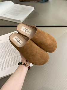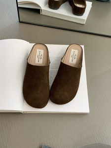 牛皮版~内增高厚底勃肯拖鞋女春秋新款森系复古坡跟包头半拖鞋子