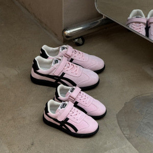 洋气粉亲子休闲板鞋2025秋季新款女童德训鞋真皮儿童软底运动鞋