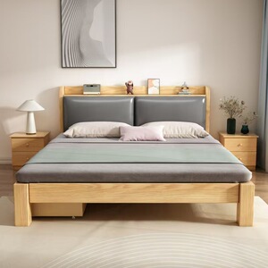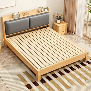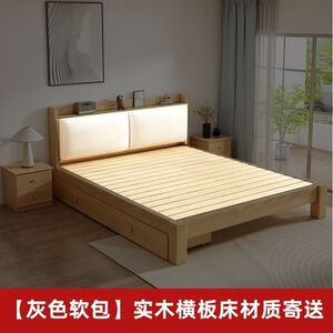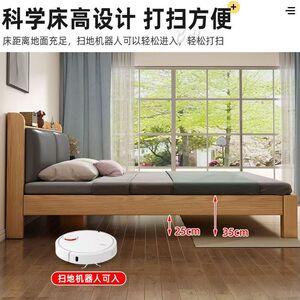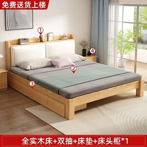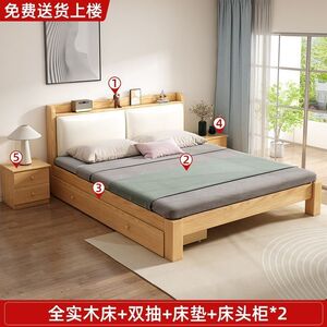 1.8米实木床双人主卧大床现代简约1.5米家用床架出租房1.2米卧室