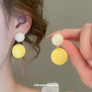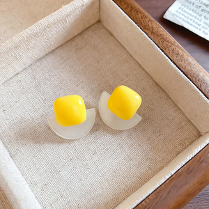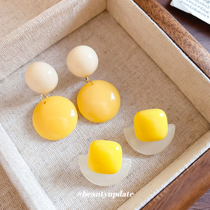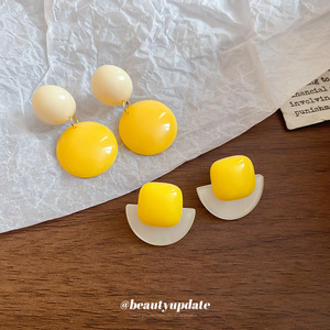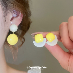 银针树脂圆形扇形方形吊坠耳钉多巴胺小清新耳环小众设计感耳饰女