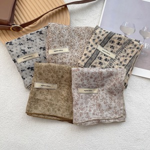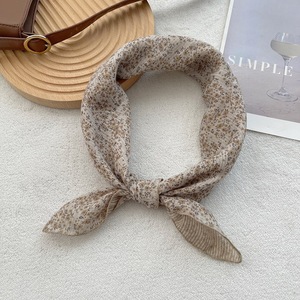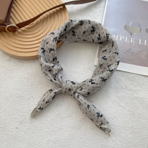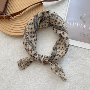 新款秋季轻薄围脖小方巾高级感女时尚格纹印花头巾系脖小领巾装饰