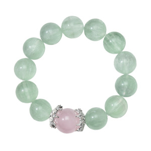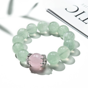 天然拉丝绿萤石手链搭配粉晶顶珠清新冰透简约手串送女朋友直播