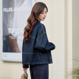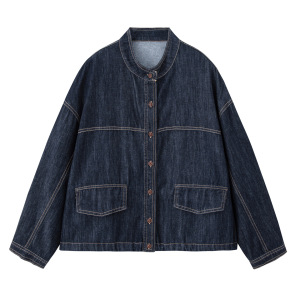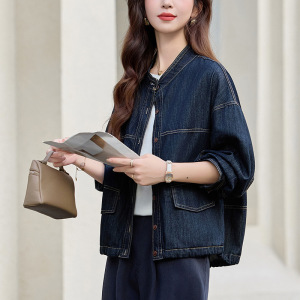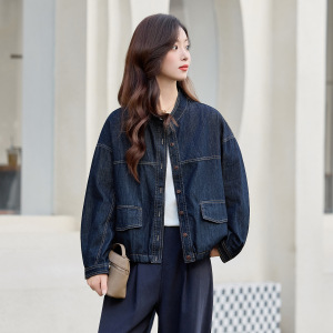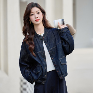 复古港风牛仔外套女2025秋季新款宽松休闲百搭长袖立领早春上衣潮