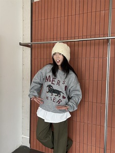 longroad 手绘小狗*美式复古圆领卫衣男女款休闲宽松潮流百搭上衣