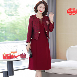 妈妈婚宴装春秋冬加绒加厚两件套装连衣裙新款喜服喜婆婆结婚礼服