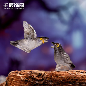 跨境热销黑色夜光乌鸦迷你动物树脂工艺装饰品配件桌面车载小摆件
