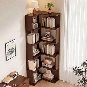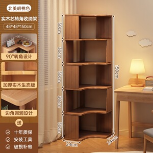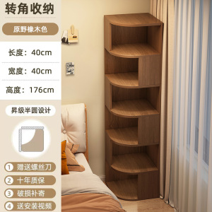 转角书架圆角置物架客厅靠墙角柜简易复古实木储物柜大容量收纳柜
