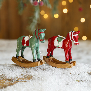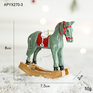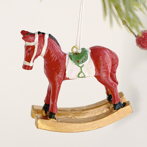 新款圣诞树配饰红色树脂复古彩绘木马小挂件木马系列精美摆件饰品