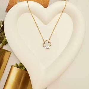 可水洗钛钢不掉色手链女四叶草贝母项链简约ins锁骨链925银针耳钉