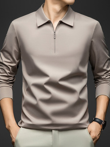 秋季长袖男士无痕Polo衫纯色商务休闲翻领拉链领休闲打底衫体恤衫