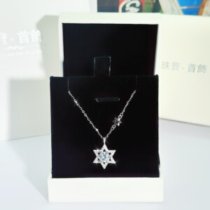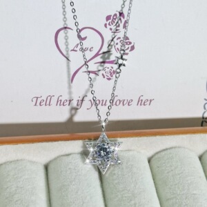 原创S925纯银六芒星项链女新款精致日常百搭超闪一克拉莫桑钻吊坠