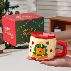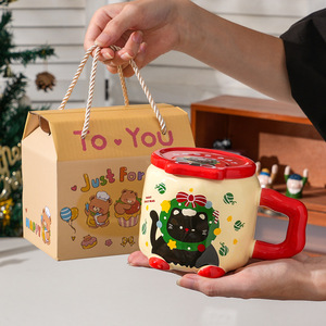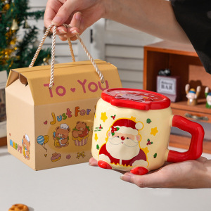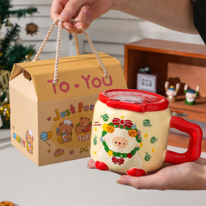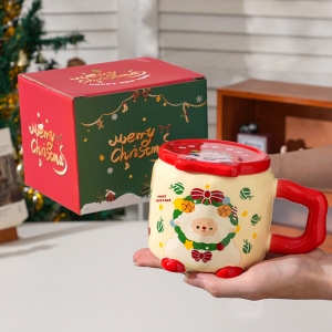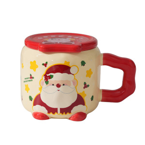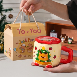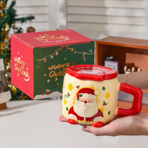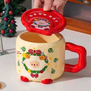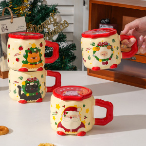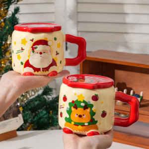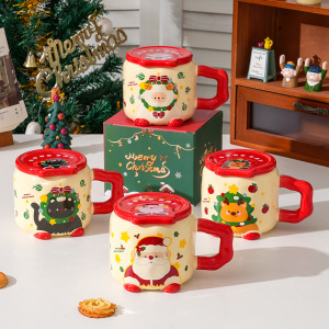 跨境卡通圣诞陶瓷杯带盖可爱家用学生情侣水杯伴手礼高颜值马克杯