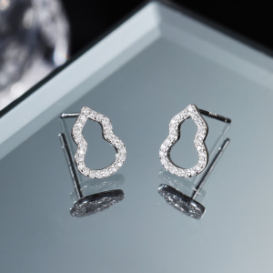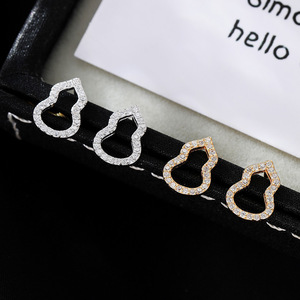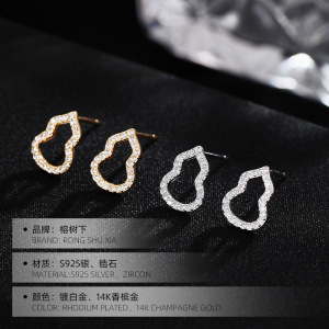 榕树下S925银镂空镶钻葫芦耳钉女轻奢镀K金爆款精致耳饰银饰批发
