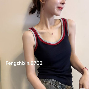 枫之欣8762时尚撞色吊带背心女固定杯修身显瘦百搭外穿无袖上衣