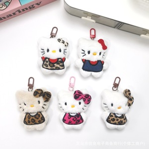 吱吱叫爆款豹纹kitty猫咪毛绒挂件可爱小猫玩偶钥匙扣挂饰diy配饰
