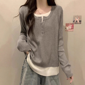 软糯遮肚子假两件毛衣针织衫女秋季新款胖妹妹宽松显瘦长袖打底衫