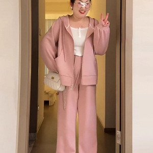 特大码300斤胖休闲运动小个子套装女秋冬季卫衣外套+裤子两件套