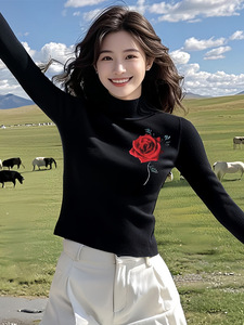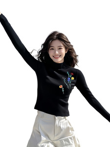 黑色迎春花修身内搭打底针织衫女2025新款春季chic韩系慵懒风上衣