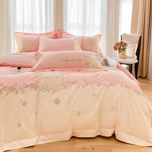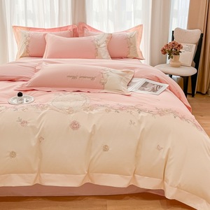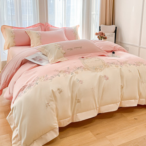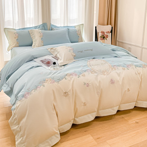 四季亲肤磨毛棉四件套2025新款刺绣被套轻奢风床单床笠款床上用品