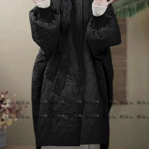 大码菱格羽绒棉衣棉服女外套长款轻薄棉袄冬季新款宽松保暖大衣女