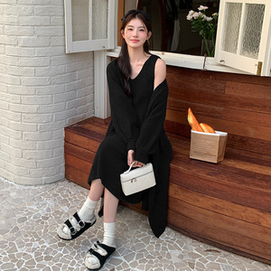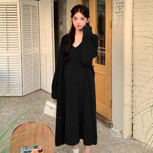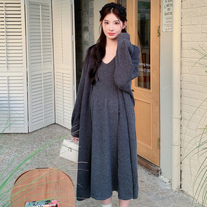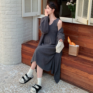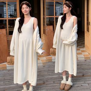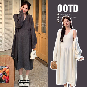 孕妇装秋冬新款毛衣开衫外套+V领针织吊带裙甜美时尚慵懒风两件套