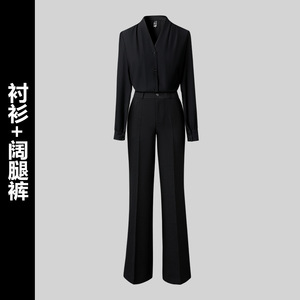 黑色西装+衬衫+阔腿裤