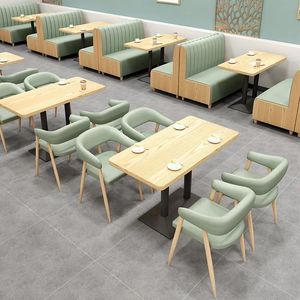 奶茶店咖啡厅桌椅组合小吃汉堡店面馆快餐店饭店靠墙沙发卡座实木