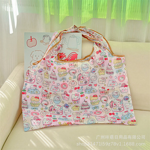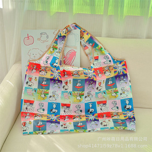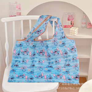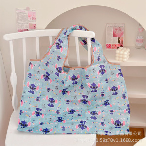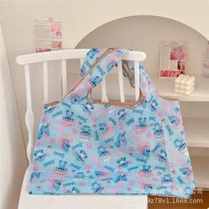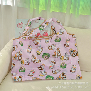 鲨鱼猫购物袋无纺布可折叠买菜袋子布袋子史迪仔labubu卡通环保袋