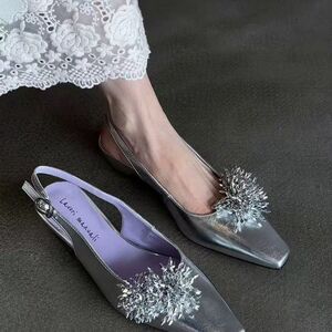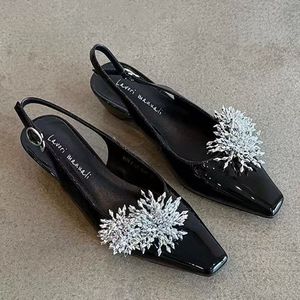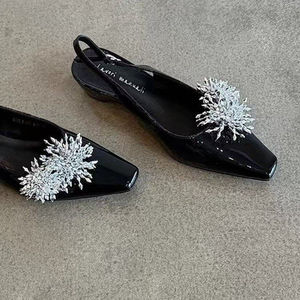 羊皮版~法式新款浅口方头晚晚鞋女黑色气质烟花洒后绊带包头凉鞋