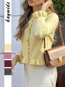 迪芸欧美休闲度假风纯色毛织纽扣长袖上衣毛衣女装2025秋冬亚马逊