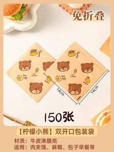 【棕色小熊】双开口包装袋 免折叠*150张;14*14cm;纸