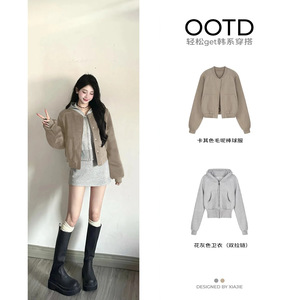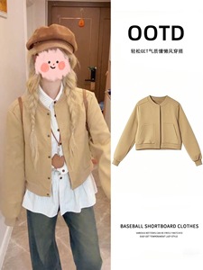 卡其色棒球服外套女正肩短款夹克上衣秋季2025新款韩系穿搭小个子