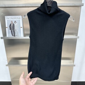 韩系早秋新款修身显瘦无袖半高领针织上衣女士气质背心打底衫上衣