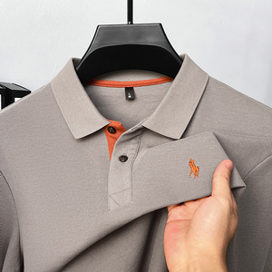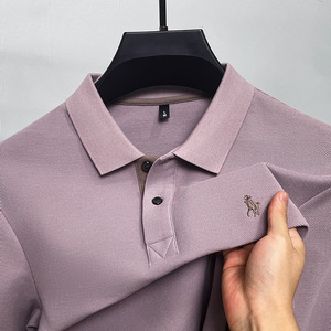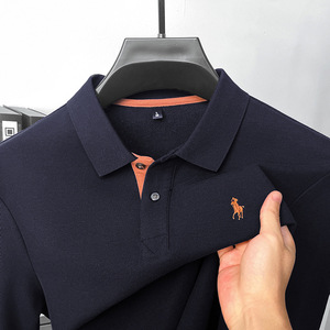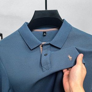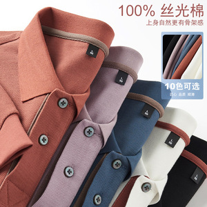 长袖polo衫男士高级感轻奢丝光棉百搭休闲高品质纯棉polo衫男t恤