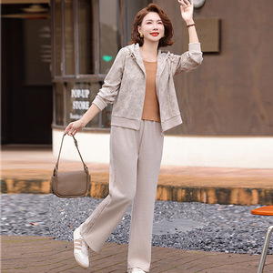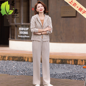 连帽妈妈装中老年秋季套装长袖长裤中年装大码妈妈装运动服两件套