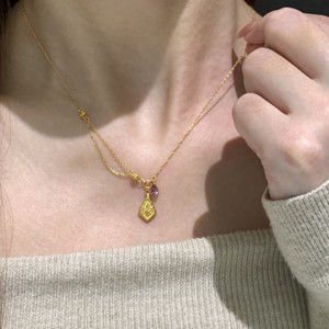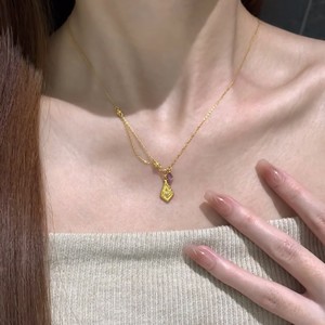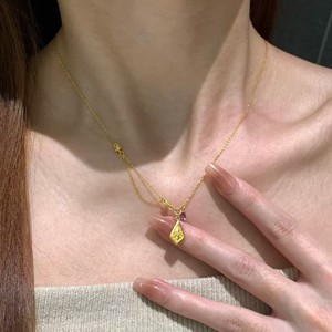 新中式金色菱形水滴吊坠项链高级感轻奢小众精致千金感女款锁骨链
